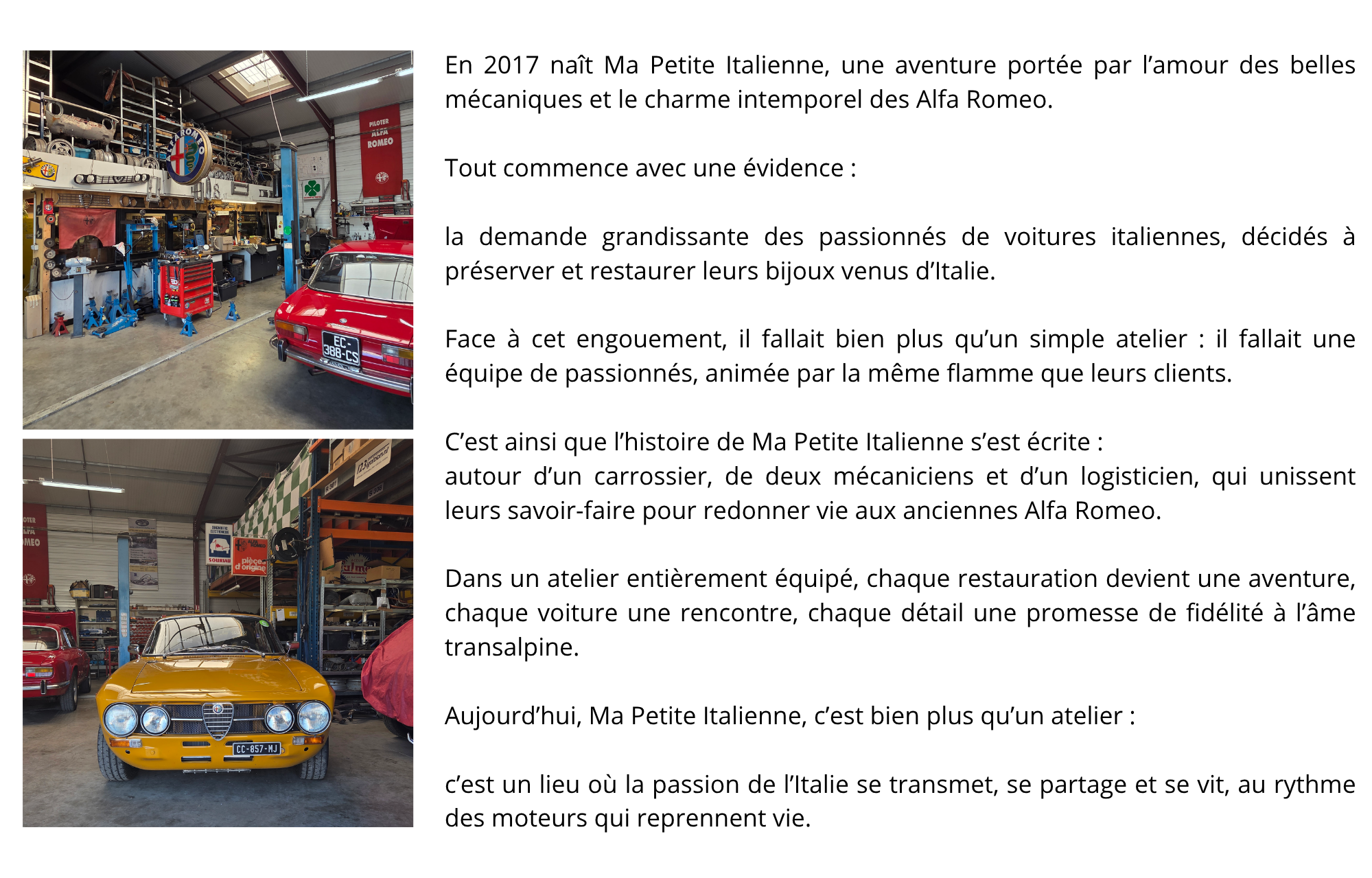 Ma Petite Italienne a donc un lien particulier avec les productions de la marque Alfa Romeo. Historiquement nos premiers travaux ont été sur des Type 105, “Coupé Bertone” en tête.